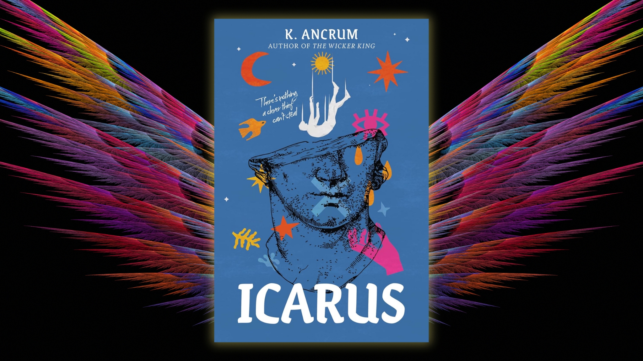 Icarus is a new queer YA romance novel from K. Ancrum, critically acclaimed author of The Wicker King. Filled to the brim with vibrant imagery, vivid detail and vivacious characters, it pulled me in from the very first page! Icarus reimagines the classic myth of Icarus into a queer, star-crossed story of love and life, presenting the reader with an exploration of human relationships, emotions, trauma and abuse, greed and grief, love and joy and so much more.
