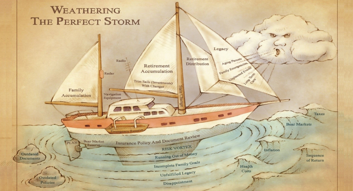The author writes that “a fine sailing vessel with splendid lines and gleaming sails offers a stylish metaphor for people’s financial life… Your mind’s eye can convey a ship across a fanciful ocean more readily than it could ever conceive the results hidden inside a multi-page financial plan.”
